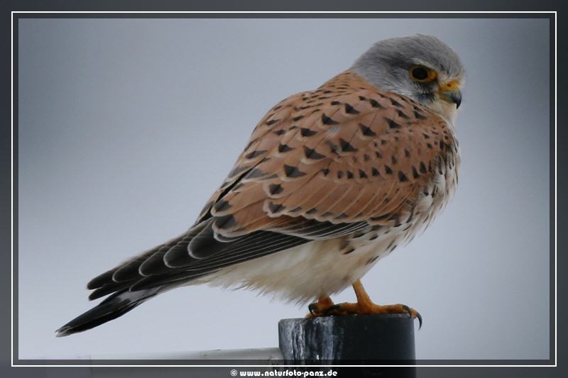 Nicht viel größer als die Turteltaube, einziger kleiner mitteleuropäischer Greifvogel, der regelmäßig rüttelt. Häufig an Straßen und Eisenbahnlinien. Männchen : grauer Kopf, rotbraune Körperoberseite mit dunklen Flecken, Unterseite cremefarben mit Flecken und Streifen, grauer Schwanz mit schwarzer Endbinde und weißem Spitzensaum. Weibchen : herzförmige Flecken auf der Oberseite und an den Flanken, Unterseite gestreift; Schwanz rötlich mit braunen Querbändern. Jungvogel : wie Weibchen, aber Oberseite weniger und Unterseite mehr gestreift.